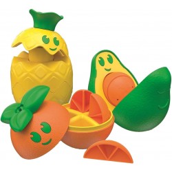 Owoce do składania, każdy w inny sposób, o progresywnych poziomach trudności. Dobór elementów i ich kompozycja stymuluje logikę i manualną zabawę.
