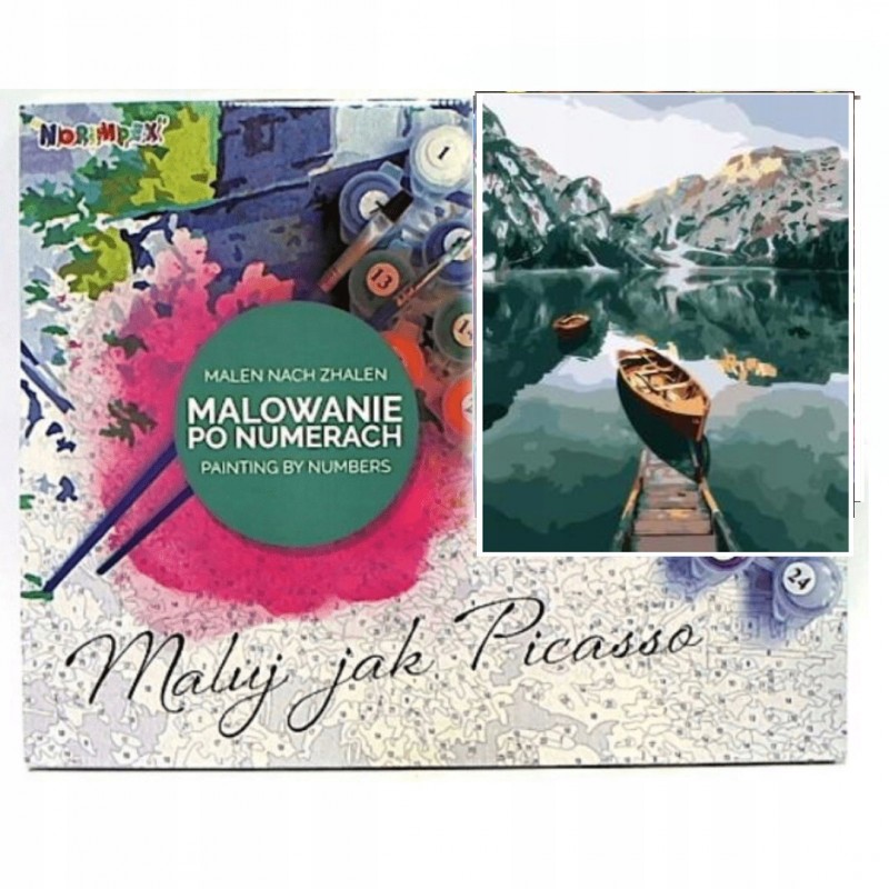Zestaw, w którym obraz jest podzielony na segmenty, nadrukowane na płótnie. Po pomalowaniu pól wyznaczonymi kolorami, oczom malarza ukaże się obrazek przystani. Każde pole jest oznaczone liczbą odpowiadającą określonemu kolorowi. Zamaluj każdy segment odpowiednim kolorem a otrzymasz prawdziwe arcydzieło stworzone własnoręcznie.