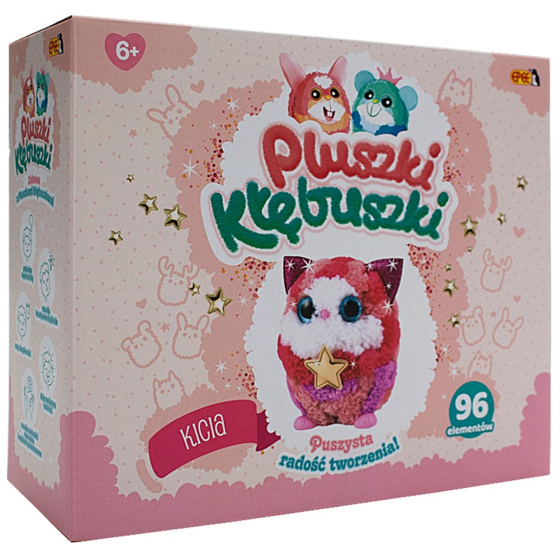 Pluszki-Kłębuszki to urocze pluszaki do samodzielnego zrobienia. Twórz, stylizuj je i baw się kolorami. Zabawa polega na przyklejaniu odpowiedniej porcji włóczki na korpus Pluszka-Kłębuszka, łącznie można stworzyć aż 12 różnych wzorów.