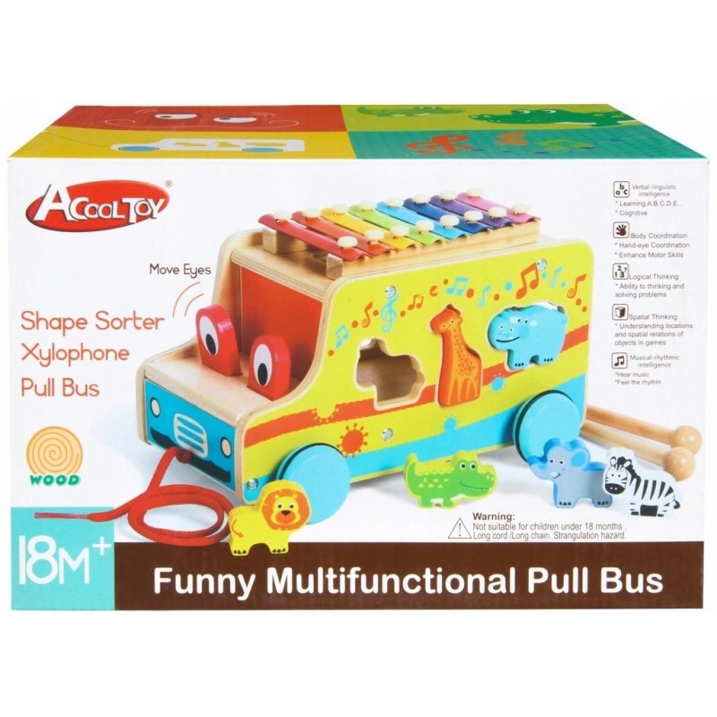 Funkcje: sorter, sorter ze zwierzątkami, cymbałki, ruchome oczy, sznurek do ciągnięcia