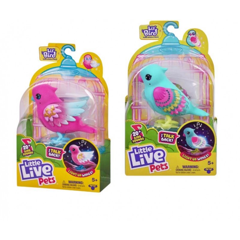 Nowa seria Ptaszków Little Live Pets ze wspaniałymi, świecącymi skrzydełkami. Ptaszki zapamiętują i powtarzają co się do nich mówi, a ich skrzydełka się rozświetlają. Uwielbiają być głaskane, będą ćwierkać i zaświecą się im skrzydełka. Im więcej się je głaszcze, tym więcej ćwierkają, a może nawet zaśpiewają. Wydają 20 ptasich dźwięków.