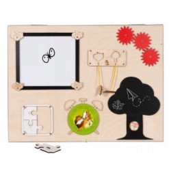 Tablica sensoryczna to świetny pomysł na kreatywną zabawę dla Twojej Pociechy. Nauka przez zabawę to najlepszy sposób na prawidłowy rozwój dzieci. Tablica jest idealnym miejscem na ćwiczenie pierwszych literek, cyferek oraz zasad panujących na przejściach dla pieszych. Odpowiednio wyselekcjonowane elementy ruchome i grające sprawią, że Twoje dziecko rozwinie swoją kreatywność oraz zdolności manualne. Dodatkowo pobudzi to w nim pomysłowość i zachęci do eksplorowania otaczającego go świata.