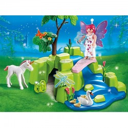 Zestaw z serii Fairies od Playmobil, zawiera wszystko, co potrzebne do odkrycia baśniowego świata cudownych czarodziejek! Skrzydlata wróżka uwielbia odwiedzać pobliskie źródełko. Gra tam na harfie, bo magiczne jednorożce uwielbiają piękną muzykę. Śliczny biały konik z różową grzywą już zaprzyjaźnił się z wróżką!