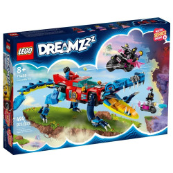 Dzięki temu zestawowi LEGO DREAMZzz Krokodylowy samochód (71458) dzieci w wieku od ośmiu lat wjadą do świata snów na pełnej prędkości. Zestaw oparty na serialu telewizyjnym pozwala dzieciom stworzyć niesamowity pojazd, który pomoże uratować Jaydena przed przerażającym Nocnym Łowcą! Jeden zestaw do zbudowania na dwa sposoby Zestaw umożliwia dwie opcje budowania i zawiera mnóstwo instrukcji opartych na serialowej fabule, dzięki czemu dzieci mogą wybrać własną przygodę i cieszyć się podwójnązabawą. Mogą zbudować krokodylowy samochód, by pokonać koszmary, lub superszybką terenówkę i miniłódkę, by je ścigać. W trybie krokodylowym pojazd ma ruchome ręce i nogi oraz miotacz dysków ukryty w przedniej kratce, dzięki czemu dzieci mogą strzelać dyskami z paszczy krokodyla. W trybie ciężarówki pojazd ma obracające się koła i zdejmowany dach, dzięki czemu można w nim umieścić minifigurkę. Fantastyczne minifigurki Zestaw zawiera szczegółowe minifigurki Coopera i Jaydena, a także Nocnego Łowcę z fajnym motocyklem i złym pomocnikiem.