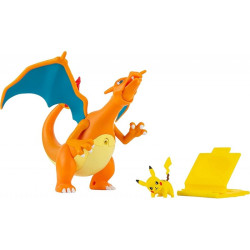 Zestaw z interaktywną figurką Charizarda stanie się wspaniałym prezentem dla wszystkich dzieci już od 4. roku życia. Charizard to Pokemon, który ewaluował z popularnego Charmandera – jest stworkiem typu ognistego, który wyglądem przypomina smoka z rozłożystymi skrzydłami. Interaktywna figurka Charizarda została bardzo szczegółowo odwzorowana i sprawdzi się dla wszystkich miłośników bohaterów japońskiego serialu animowanego – figurka jest pomarańczowego koloru, ma rozdziawioną paszczę, skrzydła, długi ogon i porusza się na dwóch tylnych łapach. Dzięki wbudowanym modułom Charizard wydaje dźwięki, porusza poszczególnymi częściami ciała, a ogień na jego ogonie migocze światełkami. Zabawka posiada łącznie aż 50 różnych efektów, dzięki którym zabawa w odgrywanie różnych walk stanie się nad wyraz realistyczna! Co więcej, w paszczy Charizarda skrywa się wyrzutnia ognistych pocisków, przed którymi trzeba uciekać, gdzie pieprz rośnie! Na drodze Charizarda stanął żółty Pikachu, którego można wystrzeliwać dzięki specjalnej wyrzutni – czy uda mu się uniknąć spotkania z rozzłoszczonym przeciwnikiem?