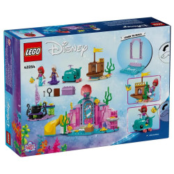 Zabawka z syrenką pomaga dzieciom rozwinąć umiejętności rozwiązywania problemów dzięki kreatywnej zabawie. Wewnątrz znajduje się grota z obrotową platformą i zjeżdżalnią, pojazd w kształcie wieloryba, wrak statku ze skrzynią ze skarbami i kociołek. W zestawie znajdują się także minilaleczki Urszuli i Arielki LEGO Disney oraz figurka rybki Florka LEGO Disney.