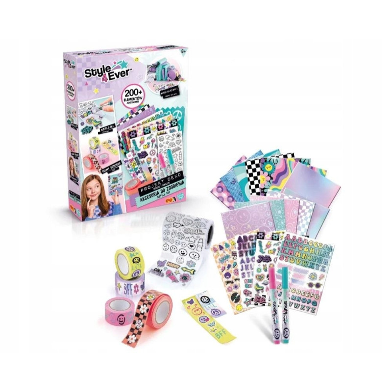 Akcesoria do zdobienia z linii Projekt Deko zapewnią jeszcze więcej zabawy i kreatywności. W zestawie znajduje się notatnik oraz szereg akcesoriów, dzięki którym stworzyć można wielokorowe elementy do ozdabiania. Akcesoria do zdobienia mogą być świetnym uzupełnieniem do innych produktów z linii Projekt Deko.