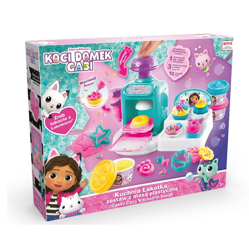Kuchnia Łakotka z linii Koci Domek Gabi to uroczy zestaw do tworzenia kolorowych ciast, ciasteczek i innych łakoci. W zestawie znajdują się narzędzia, maszyna do tworzenia ciast oraz masy plastyczne w 3 kolorach.