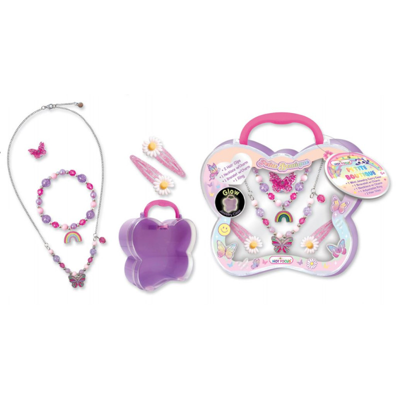 Super zestaw akcesoriów biżuteryjnych dla małych Dam. Wszystkie akcesoria są zapakowane w ozdobne puzderko z rączką, zamykane na wygodny zatrzask. Taki komplet, będzie idealnym prezentem.