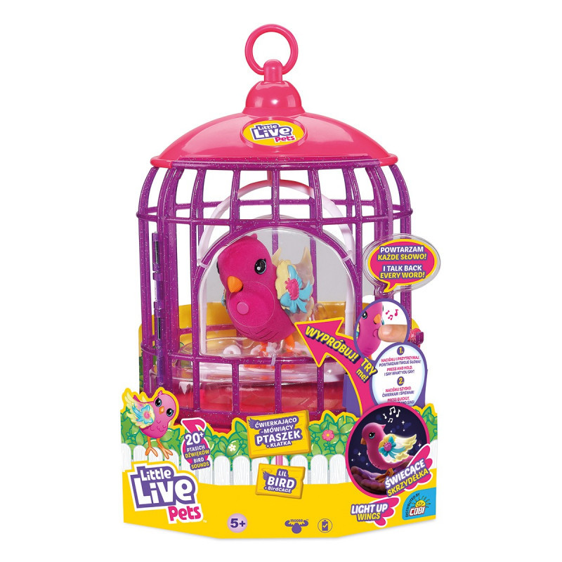 Nowa seria Ptaszków Little Live Pets ze świecącymi skrzydełkami, w zestawie z klatką. Teraz ptaszki mogą pochwalić się jeszcze piękniejszymi skrzydełkami niż dotychczas. Ich świecące skrzydełka są niezwykłe i rozświetlają się pięknym kolorowym światłem. Ptaszki zapamiętują i powtarzają co się do nich mówi, a ich skrzydełka się rozświetlają. Uwielbiają być głaskane, będą ćwierkać i zaświecą się im skrzydełka. Im więcej się je głaszcze, tym więcej ćwierkają, a może nawet zaśpiewają. Wydają 20 ptasich dźwięków. Dzięki klatce można je zabrać na spacer, do koleżanki. W klatce, na huśtawce miejsce na 2 ptaszki.