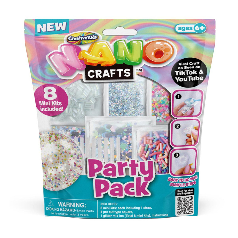 Rozpocznij imprezę z zestawem Nano Crafts Party Pack! Idealny na przyjęcia urodzinowe dla dzieci, a nawet dla dorosłych. Zestaw zawiera 8 mini zestawów Nano Crafts wraz z materiałami potrzebnymi do wzięcia udziału w tym trendzie.