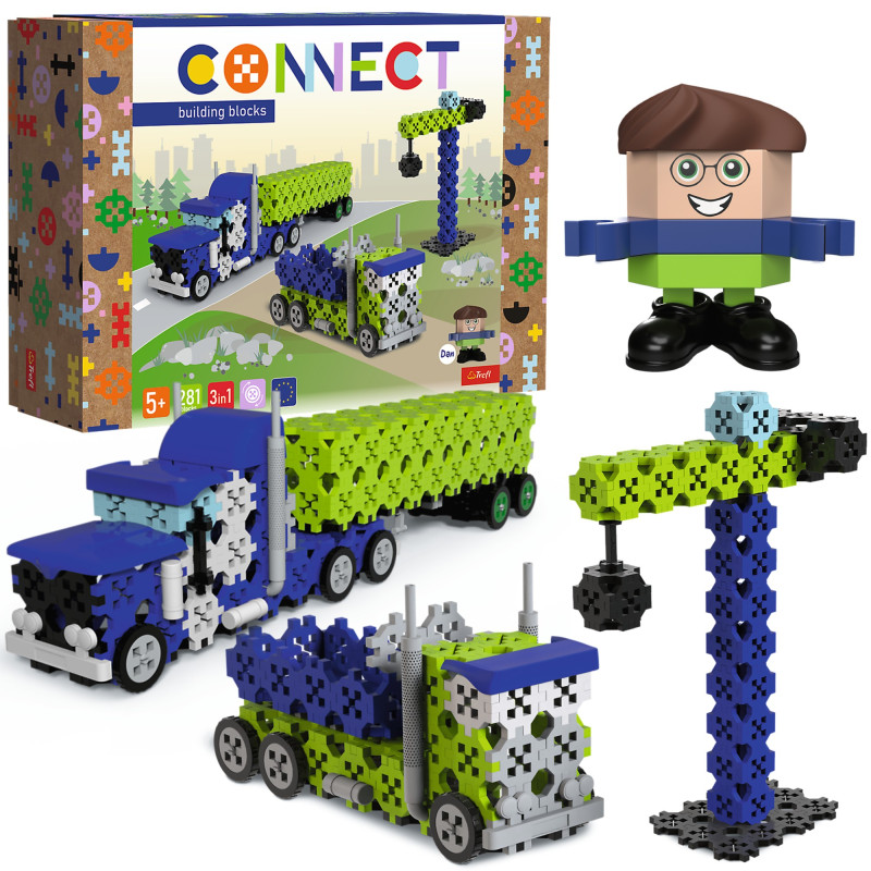 Klocki zostały stworzone przez niezwykle szybko rozwijającą się polską markę Trefl, która słynie z produktów wysokiej jakości. Zestaw puzzli składa się z 279 elementów i umożliwia ułożenie dźwigu lub ciężarówki. W opakowaniu znajdziemy także małą figurkę przedstawiającą chłopczyka o imieniu Dan. Wśród małych zestawów uzupełniających można zdobyć więcej małych figurek dzieci, takich jak: Adi, Bea, Jay oraz Kim.