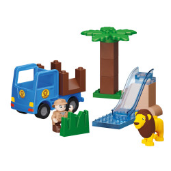 - klocki do złożenia pojazdu dostawczego, palmy i zjeżdżalni