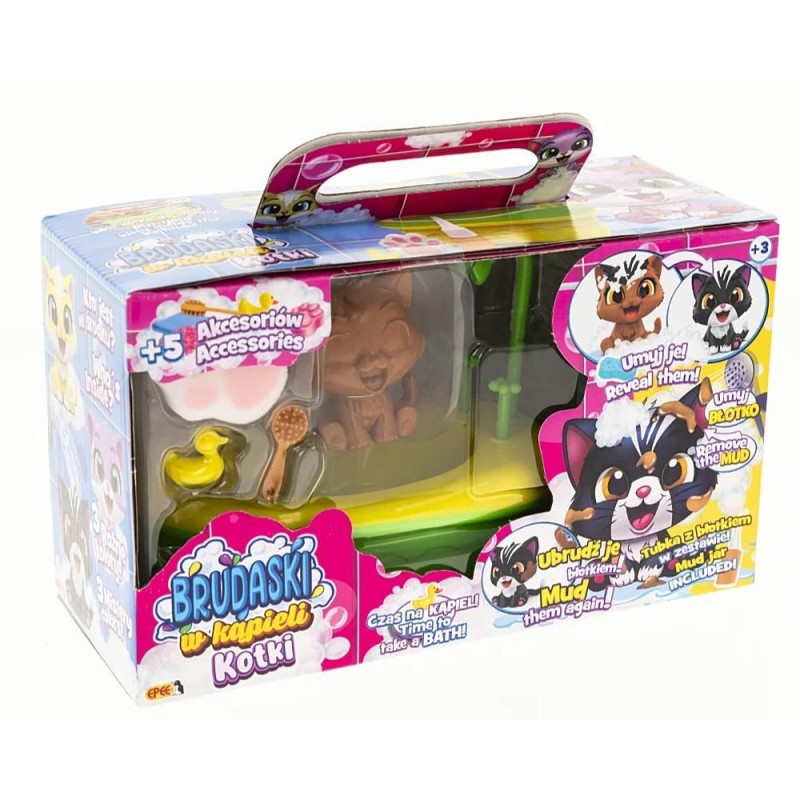 Kolekcja przesłodkich kotków, które można brudzić błotkiem, myć i zaczynać całą zabawę od nowa! Brudaski w kąpieli kotki to urocze figurki, które zostały stworzone po to, by zapewnić dzieciom mnóstwo radości i niezliczone możliwości kreatywnej zabawy. Dzięki specjalnej powłoce łatwo je wyczyścić, a zabawę ulepszą dołączone do kotków akcesoria. Brudaski w kąpieli kotki w saszetce to dodatkowa niespodziana! Można trafić na kotka świecącego w ciemności! Każdy zestaw Brudaski w kąpieli pozwala dzieciom na wielogodzinną zabawę, która rozwija wyobraźnię i umiejętności manualne. Te wspaniałe kotki będą świetnym towarzyszem podczas kąpieli, ucząc jednocześnie dbania o czystość i higienę w sposób zabawny i angażujący.