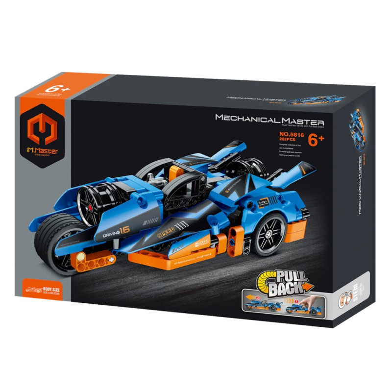 Niezależnie od tego, czy jesteś fanem samochodów, czy robotów, ta rewolucyjna, nowa marka klocków konstrukcyjnych jest tutaj, aby przenieść zabawę na zupełnie nowy poziom! Klocki przedstawiają motocykl w kolorze niebieskim, wyposażony w funkcję pull and back