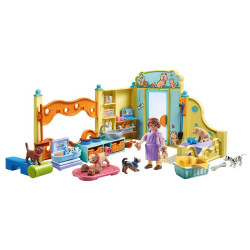 W Domu dla szczeniaków PLAYMOBIL każdy piesek jest rozpieszczany! Od mycia i pielęgnacji po ważenie i karmienie, w tym domku nie zabraknie niczego. Szczenięta mogą drzemać w przytulnych legowiskach lub odkrywać otoczenie, a dołączona podwójna smycz zapewnia długie radosne spacery.