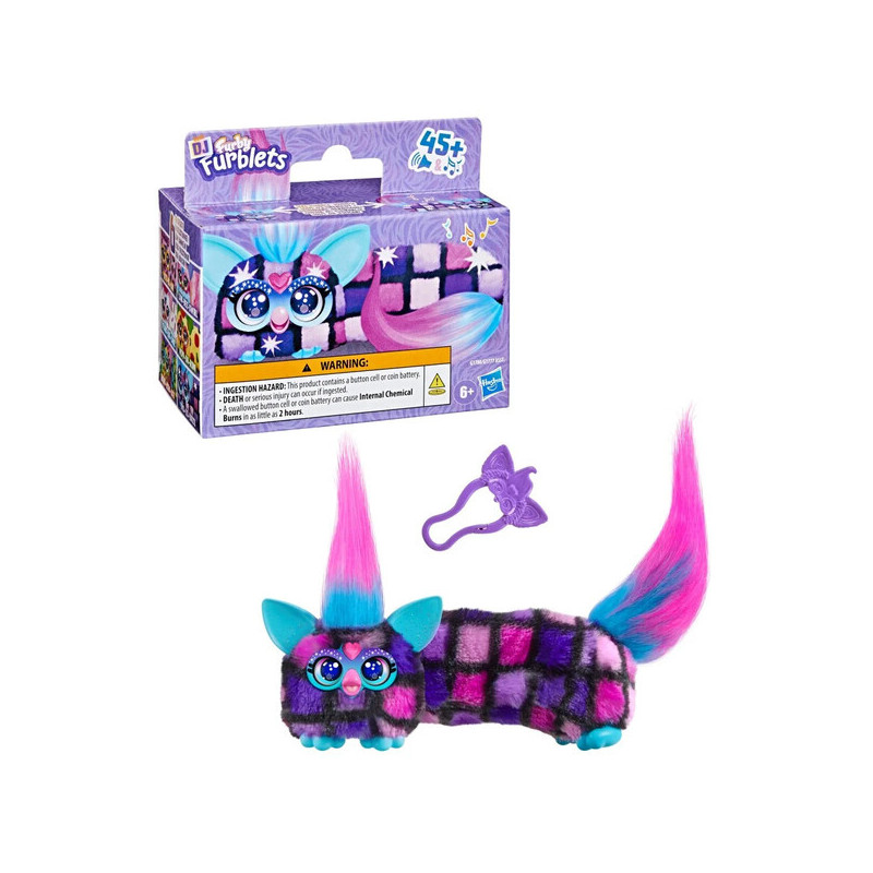 DJ Furbisie to dziwne i urocze małe stworki z którymi nie da się nie zaprzyjaźnić! Rozciągliwy pluszak Dis-Co-Dazz to fantastyczny imprezowicz z wesołą muzyką i dźwiękami, który zna wyjątkowy język furbijski. Do wesołej sensorycznej zabawy rozciągnij zabawkę, by zaczęła śpiewać lub przyspieszyła piosenkę w zwariowany sposób podczas odtwarzania. Miniaturowa zabawka Furby ma przycisk, którym można ją zmniejszyć do pierwotnych rozmiarów (jak przy zwijaniu miarki). Po naciśnięciu przycisku - serduszka odtwarza muzykę, a jej buzia wydaje śmieszne odgłosy jedzenia i efekty dźwiękowe. Przypnij małego nu-laa breloczkiem do plecaka i zabierz go ze sobą!
