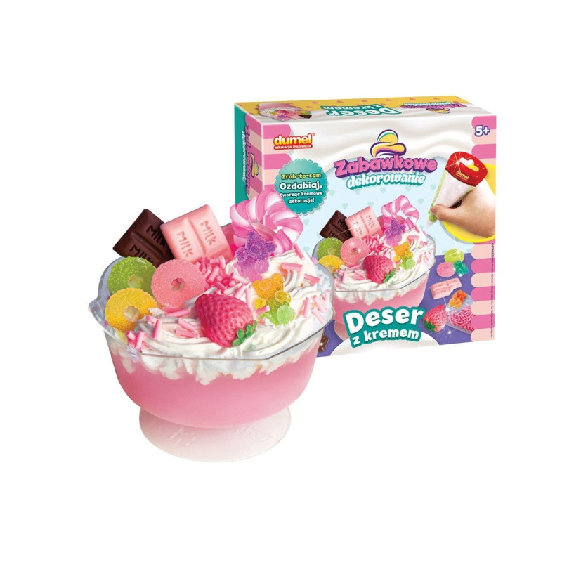 Wciel się w rolę cukiernika, tworząc zabawkowy deser i ozdabiając go kolorowymi dodatkami! Ten kreatywny zestaw zawiera masę plastyczną, masę kremową w tubce do wyciskania i mnóstwo kolorowych dodatków, z pomocą których ozdobisz swój zabawkowy deser. Gdy skończysz dekorować, pozostaw deser, aby stwardniał, najlepiej na całą dobę.