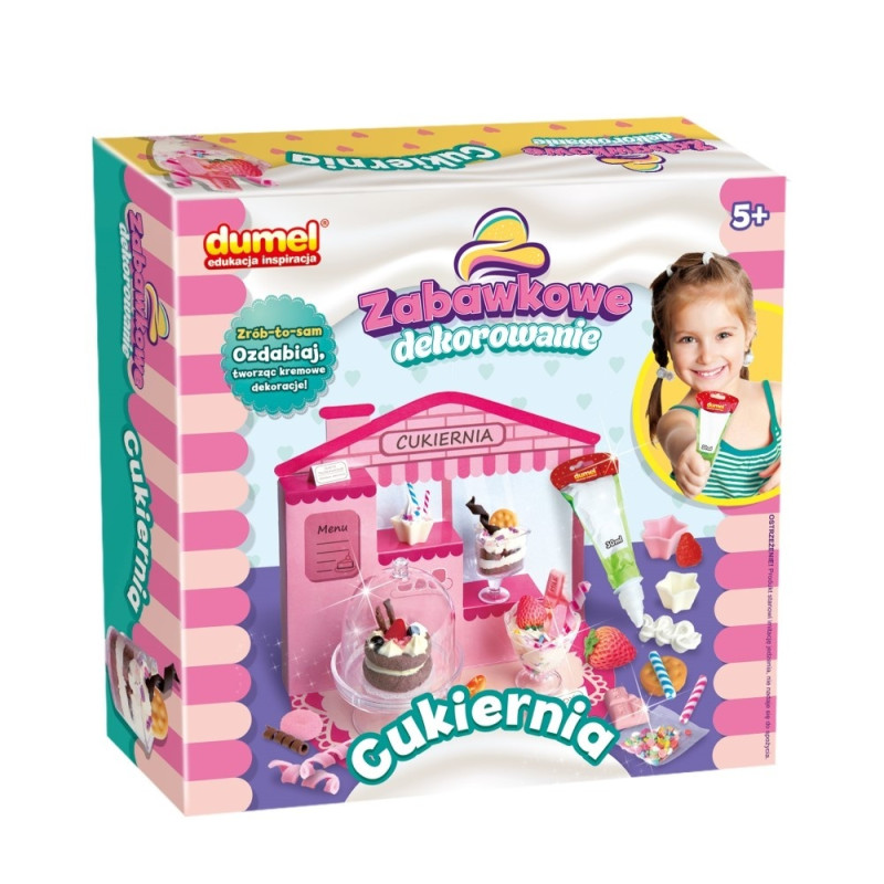 - kreatywny zestaw do stworzenia zabawkowego deseru i udekorowania go za pomocą masy do wyciskania oraz dołączonych akcesoriów