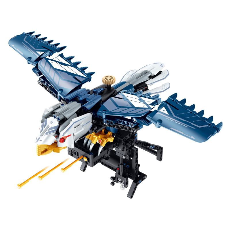 Klocki przedstawiają mechaniczną rękawicę w kształcie sokoła z możliwością strzelania pociskami.