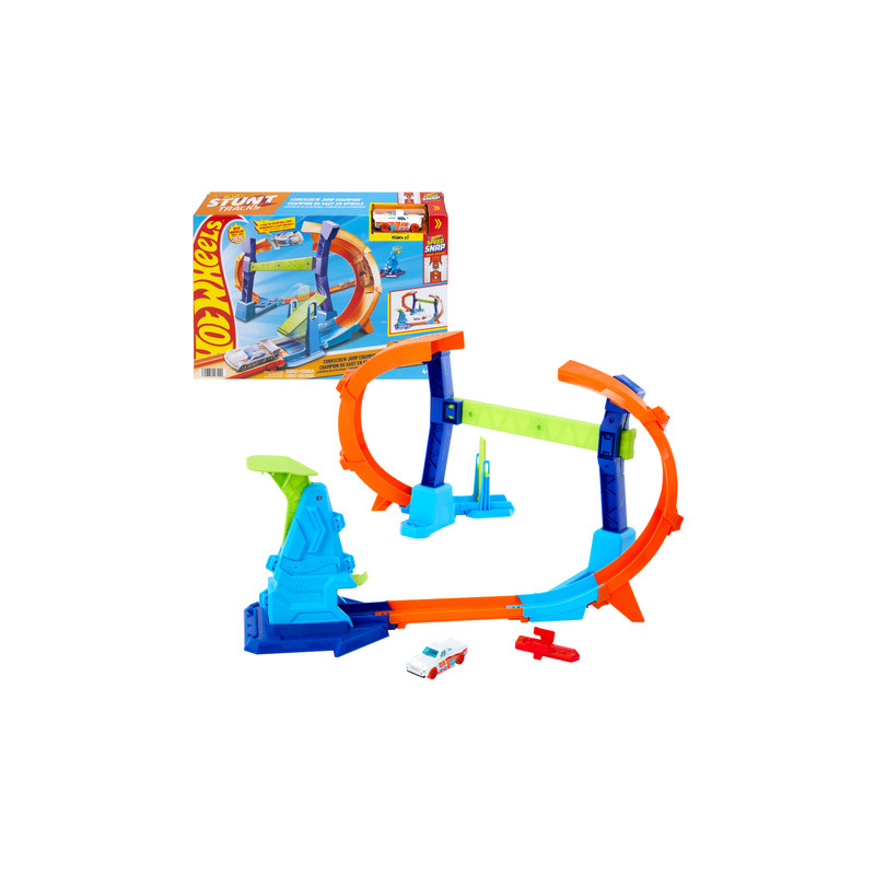 Hot Wheels Mistrzowski Skok na Pętli to dynamiczny zestaw torów wyścigowych przeznaczony dla dzieci. Pozwala na wykonywanie efektownych trików dzięki specjalnej konstrukcji pętli, którą można rozsunąć na środku, tworząc skocznię. Im większa przerwa między częściami pętli, tym trudniejszy i bardziej spektakularny staje się skok samochodziku.