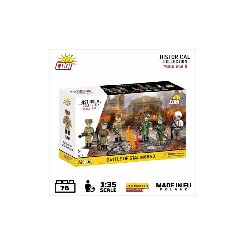 Zestaw klocków COBI przedstawiający Bitwę pod Stalingradem – jedno z kluczowych starć II wojny światowej. Zawiera szczegółowe modele pojazdów wojskowych, budynków i żołnierzy, które pozwalają odtworzyć historyczne sceny bitewne. Klocki rozwijają kreatywność, zdolności manualne i zainteresowanie historią. Idealny dla miłośników historii wojskowości i kolekcjonerów modeli COBI.