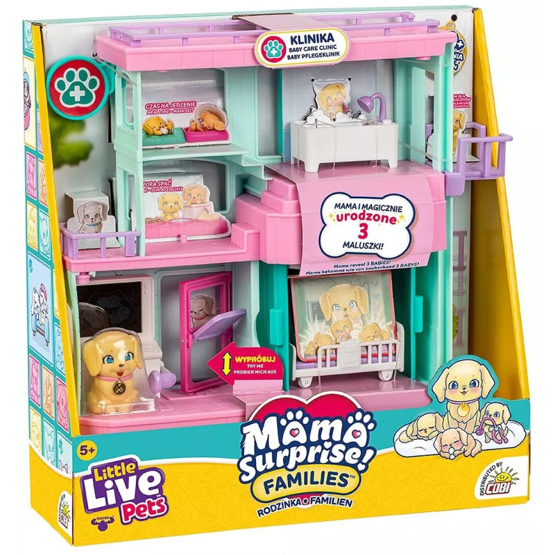 Interaktywna zabawka od Moose Toys dystrybuowana przez COBI, łącząca domek dla zwierząt z kliniką weterynaryjną. Motywem przewodnim jest opieka nad psią rodziną – dziecko wciela się w rolę opiekuna lub weterynarza. Model ma wielopoziomową konstrukcję: na dole znajduje się część kliniczna (badania, pielęgnacja), a wyżej przestrzeń mieszkalna dla zwierząt. Zabawka zawiera liczne elementy interaktywne, m.in. windę do transportu zwierzątek, stanowisko do kąpieli, miejsce do odpoczynku oraz akcesoria medyczne (np. rentgen).