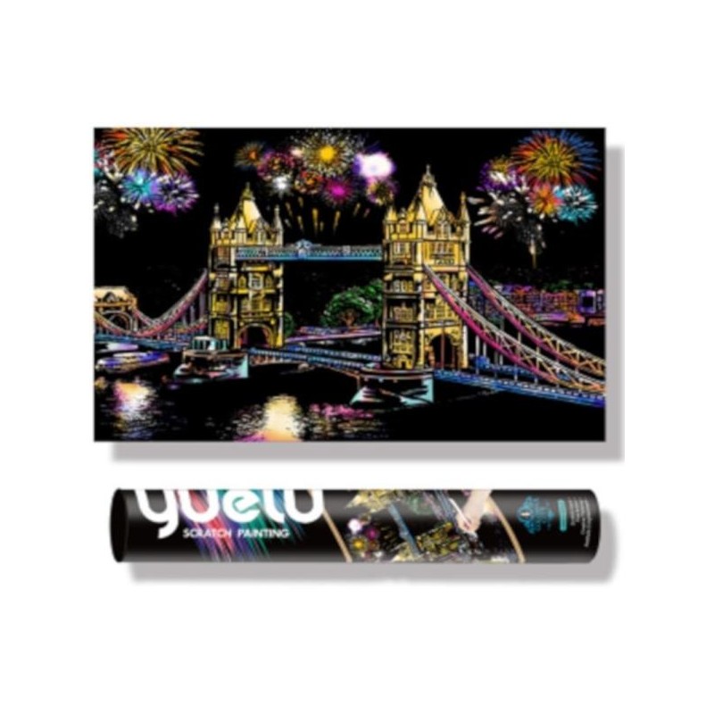 Doskonale przemyślane zastosowanie czarnego arkusza, pozwala na stopniowe wydrapywanie rysikiem poszczególnych elementów obrazów.