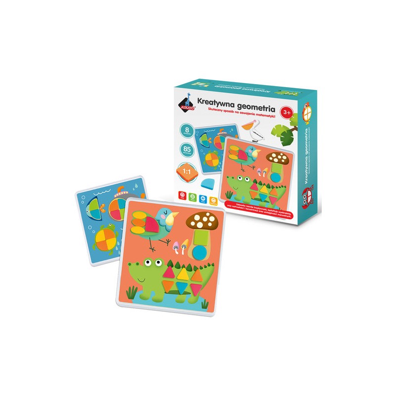 Zestaw uczy podstawowych pojęć, czym jest kształt, powierzchnia i przeznaczenie. Następnie po kolei rozmiar, miejsce, ilość, wzór i kierunek. Skuteczny sposób na łatwe wprowadzenie do matematyki.