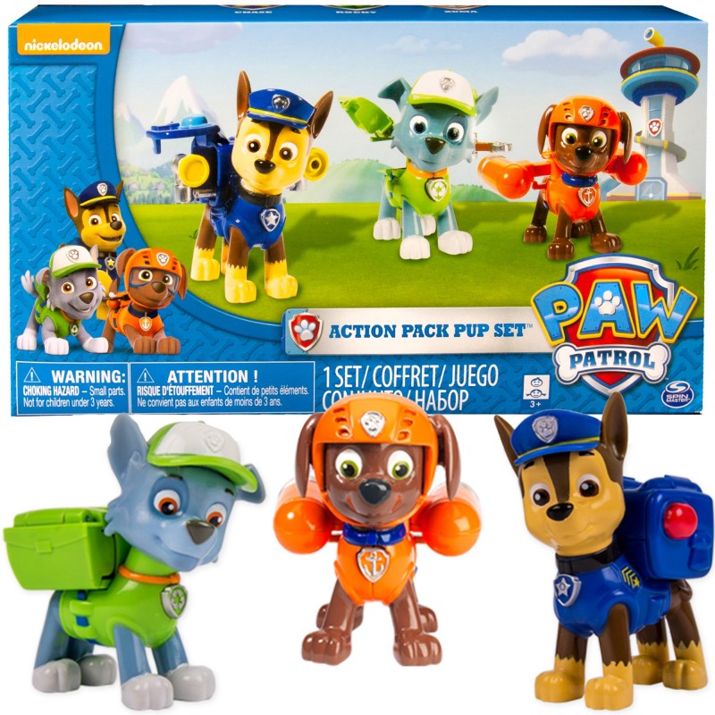 Zestaw, na który składają się trzy figurki szczeniaków w charakterystycznych dla nich strojach