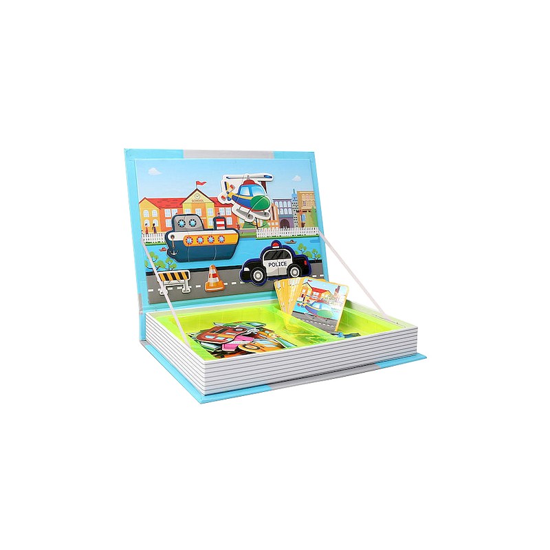 Świetna rozrywka dla małych fanów motoryzacji, a także wszystkich twórczych dzieci. Układanka magnetyczna w pudełku w formie książki, które po otwarciu służy do układania magnetycznych puzzli