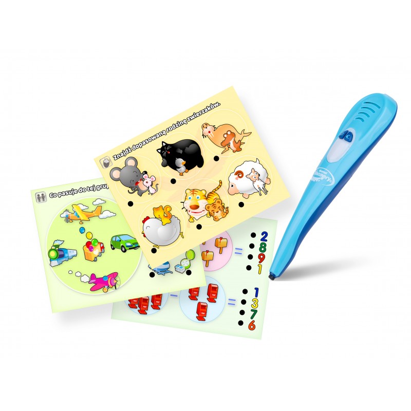 Sprytny, mówiący długopis zabierze Cię w ekscytującą podróż do świata nauki! W zestawie znajdziesz aż 50 dwustronnych kart, zawierających pytania z 13 różnych kategorii. Aby udzielić odpowiedzi, wystarczy przycisnąć dotykową końcówką długopisu czarną kropkę przy wybranej przez siebie odpowiedzi. Smart Pen poinformuje czy udzielona przez Ciebie odpowiedź jest prawidłowa, czy błędna. Możesz dostosować sposób sygnalizowania odpowiedzi do własnych upodobań (światło, dźwięk lub głos). Długopis posiada regulację głośności, więc możesz się nim bawić, gdzie tylko zechcesz.