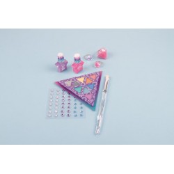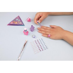 W tym zestawie znajdziesz wszystko, czego potrzebujesz, by przyciągnąć zachwycone spojrzenia i zabłysnąć w każdej sytuacji! Cienie do powiek o połyskujących kolorach pozwolą Ci wyczarować niezwykły makijaż, a buteleczki w kształcie gwiazdek zawierają modne lakiery do paznokci. Dodatkowo podkreślisz swoją stylizację dzięki pięknym kryształkom do zdobienia twarzy i kryształowym pierścionkom.