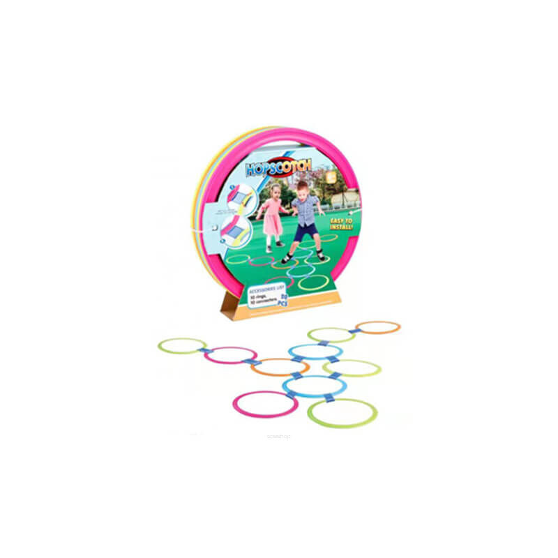Nie musimy rysować toru kredą, rozkładamy go za pomocą kolorowych obręczy połączonych w prosty sposób specjalnymi łącznikami. Krążki są elastyczne, wykonane z mocnego tworzywa. Możemy tworzyć wiele kombinacji toru. Gra w klasy to nie tylko świetna zabawa, ale także wartościowe narzędzie edukacyjne, które wspiera rozwój motoryczny dziecka, oraz zachęca do aktywności fizycznej. W grę można grać w pomieszczeniu i na świeżym powietrzu.